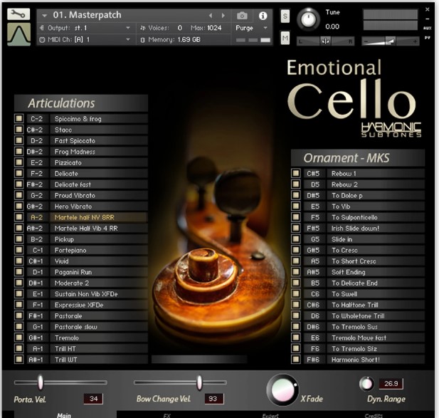 現在打ち込みにはサンプリング系のBEST SERVICE社”Emotional Cello”とVIENNA社”SYNCHRON-IZED SOLO STRINGS”を使っています。 後者はアンサンブルの中で使う分にはいいんですが、ソロ単独だと(自分の実力では)どうしてもシンセっぽい音になってしまいます。 そこで、様々なアーティキュレーションをサンプリングしているEmotional Celloを主に使っています。 ただ、どちらも数10GBの容量を持つ大きな音源です。 その上それぞれKONTAKTやSynchron PlayerといったサンプラーソフトウエアをDAWに読み込んで、その上で走らせる必要があります。