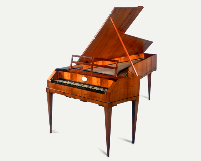 現在のダンパーに当たる機能は、足でペダルを踏むのではなく膝を使って鍵盤の下にあるレバーを押し上げる仕組みだったそうです。 只、音の持続はさほどではなく、レバーを戻せば直ぐに減衰したのでこの楽譜冒頭の弾き方としてはあまり問題なく出来たのではないかと予想されます。
